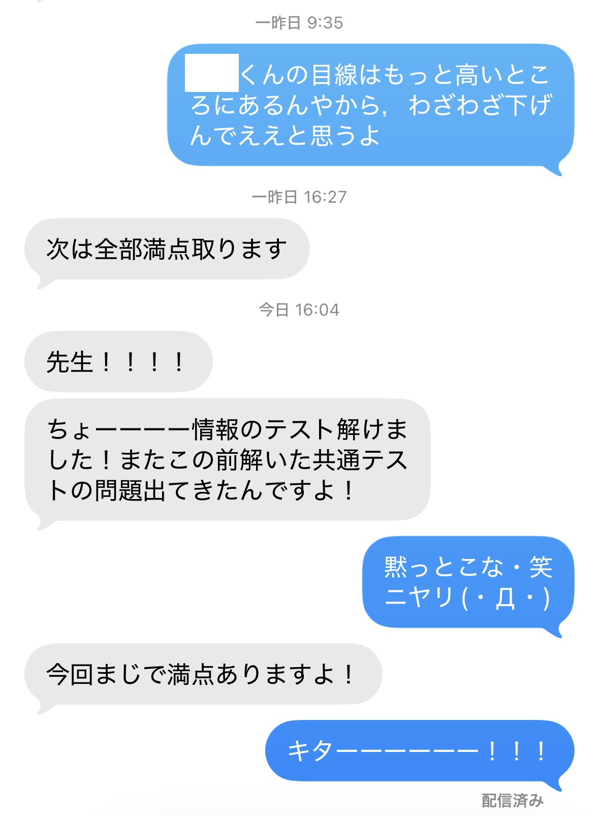 絶対に学力を伸ばすんだ!,とにかく合格を掴みます!,決して諦めてはいけない!,正に『情熱』の塊。笑顔の奥に秘められた強い気持ちが奮い立ちます。将来を見据えて直向きに努力する姿勢は,本当に素晴らしいです。一喜一憂を跳ね除け,我慢一徹で地道な工夫の連続が「学力を伸ばす鍵」を掴みます。