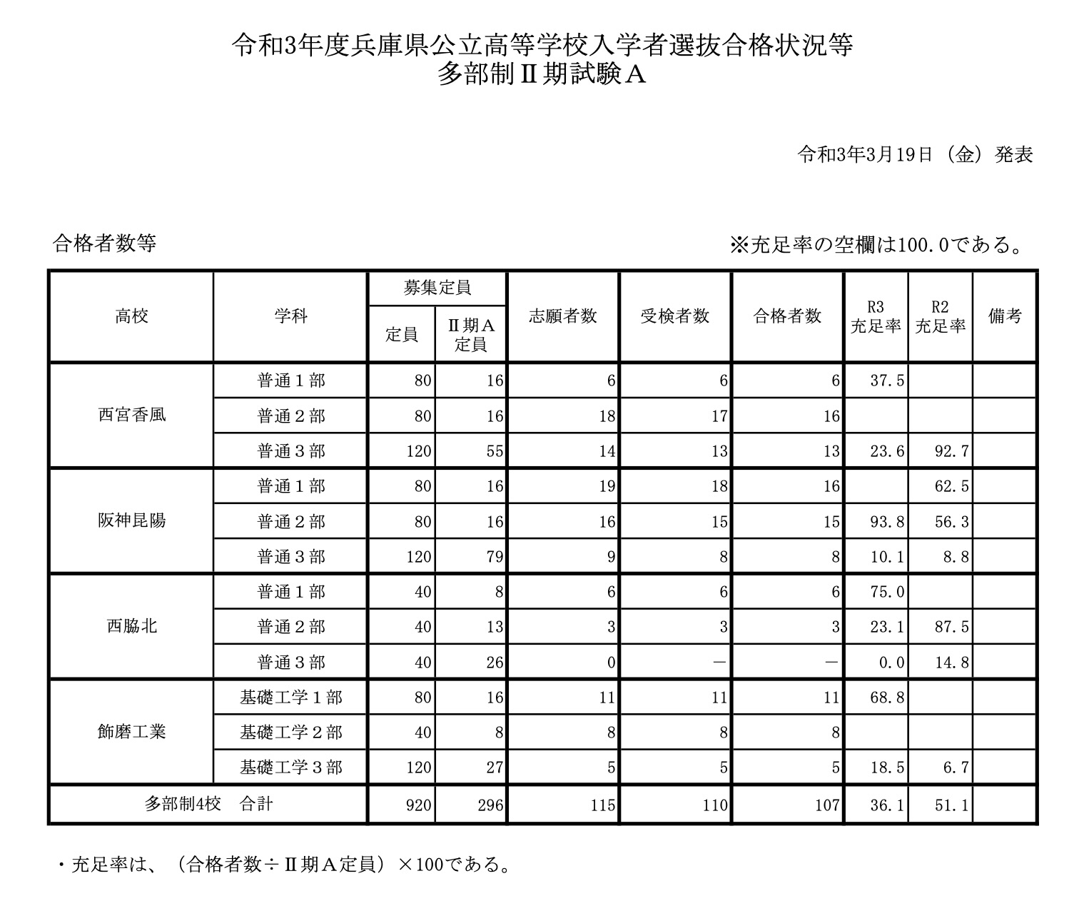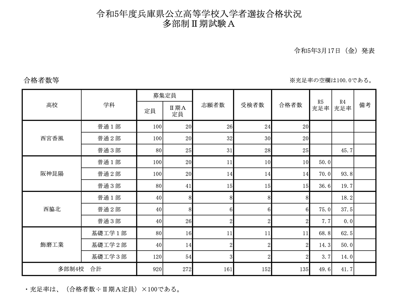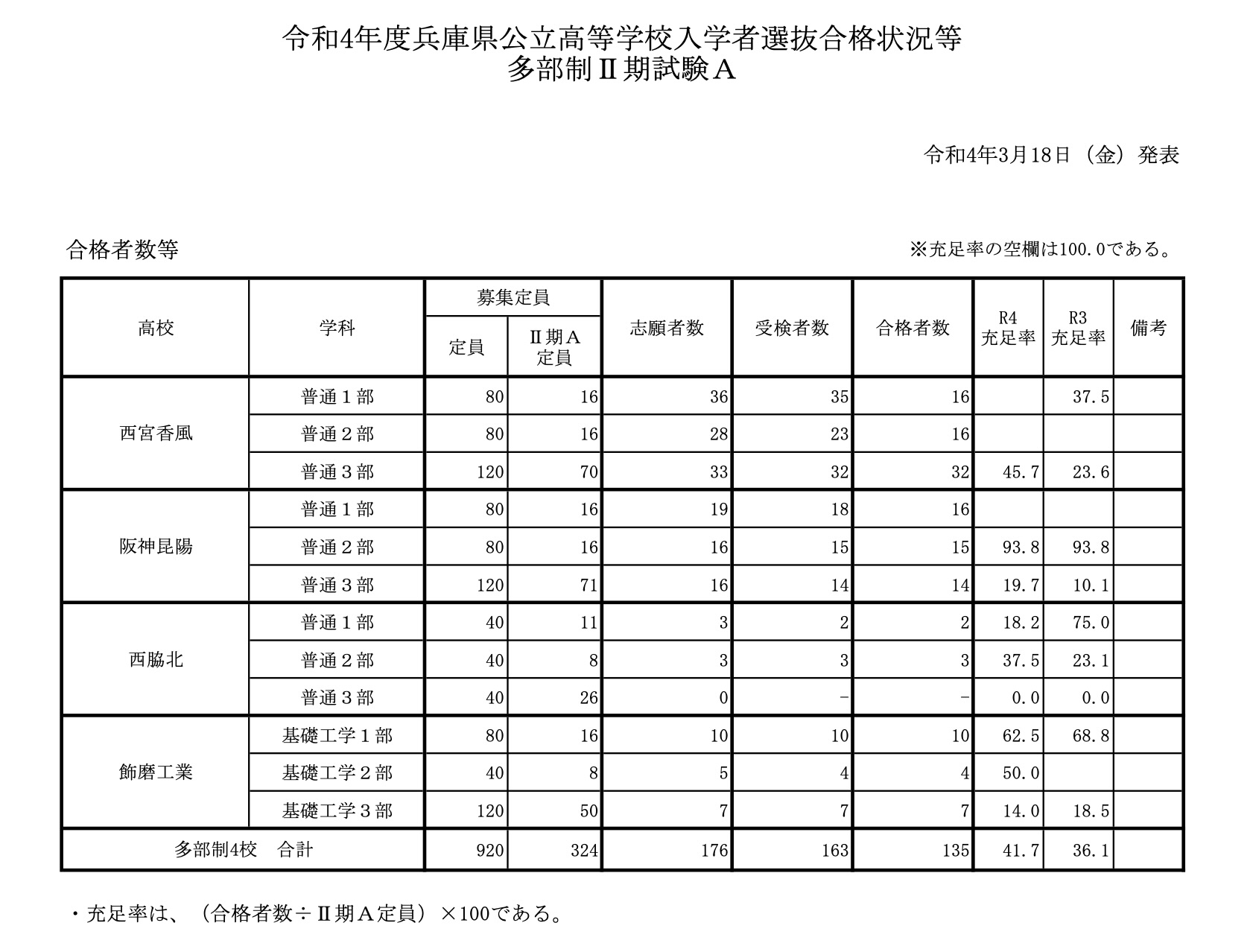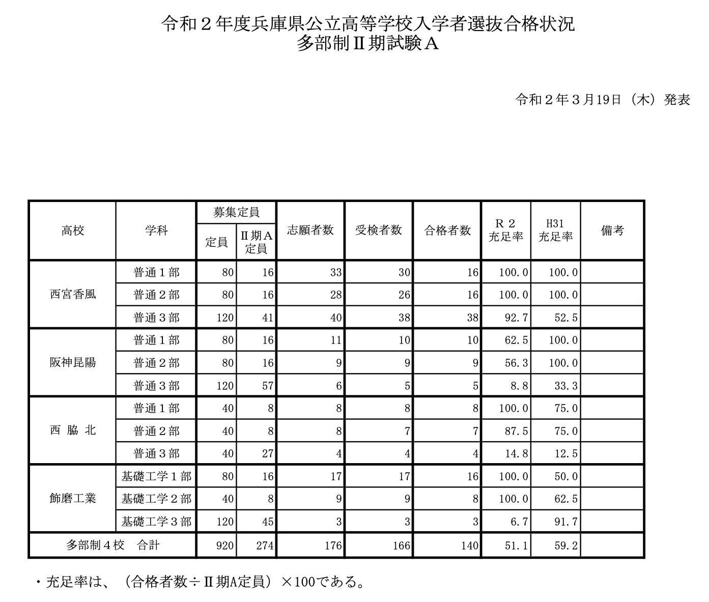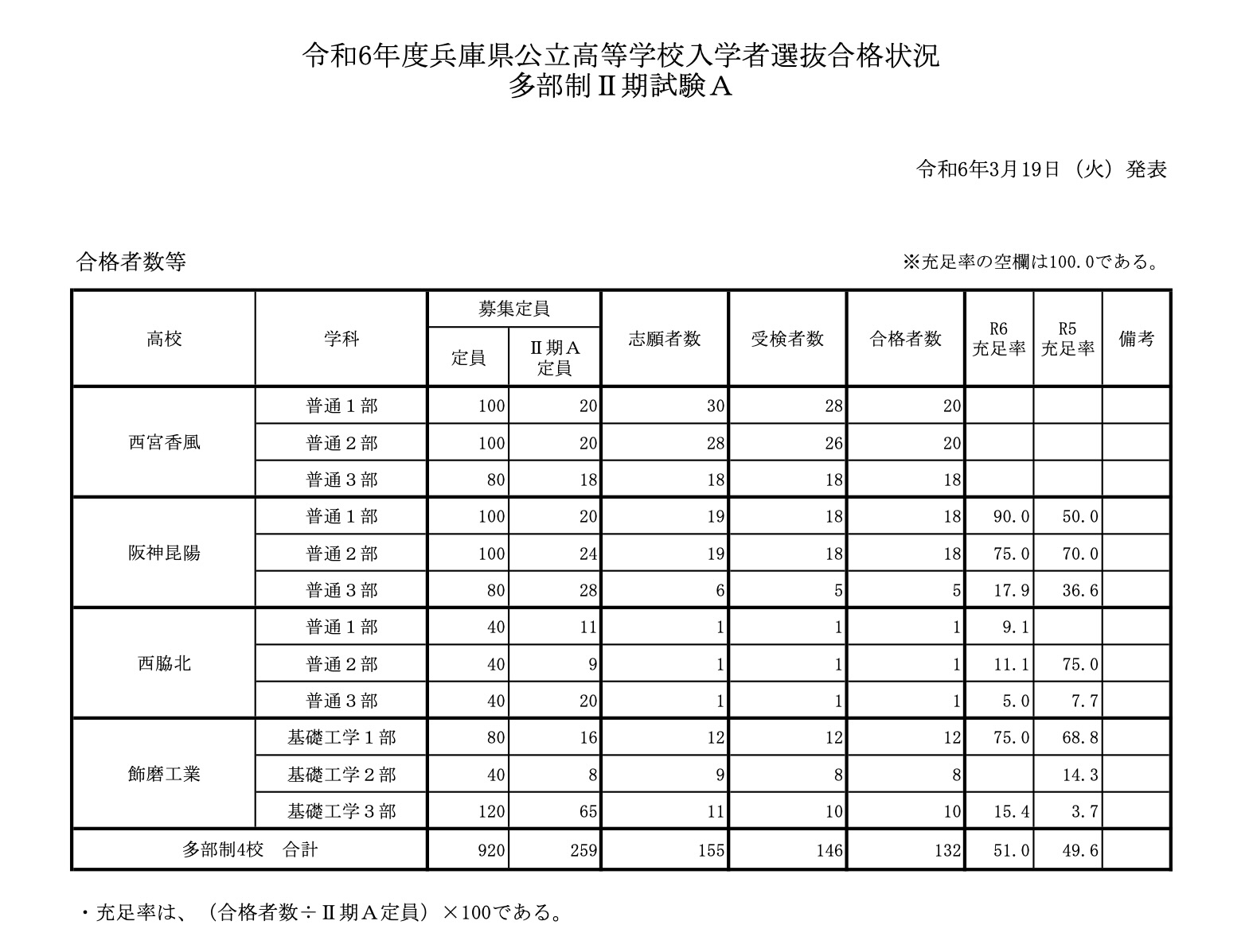 兵庫県公立高等学校入学者選抜(定時制・多部制・通信制)Ⅰ期試験と学力検査とⅡ期試験Aそれぞれの合格状況