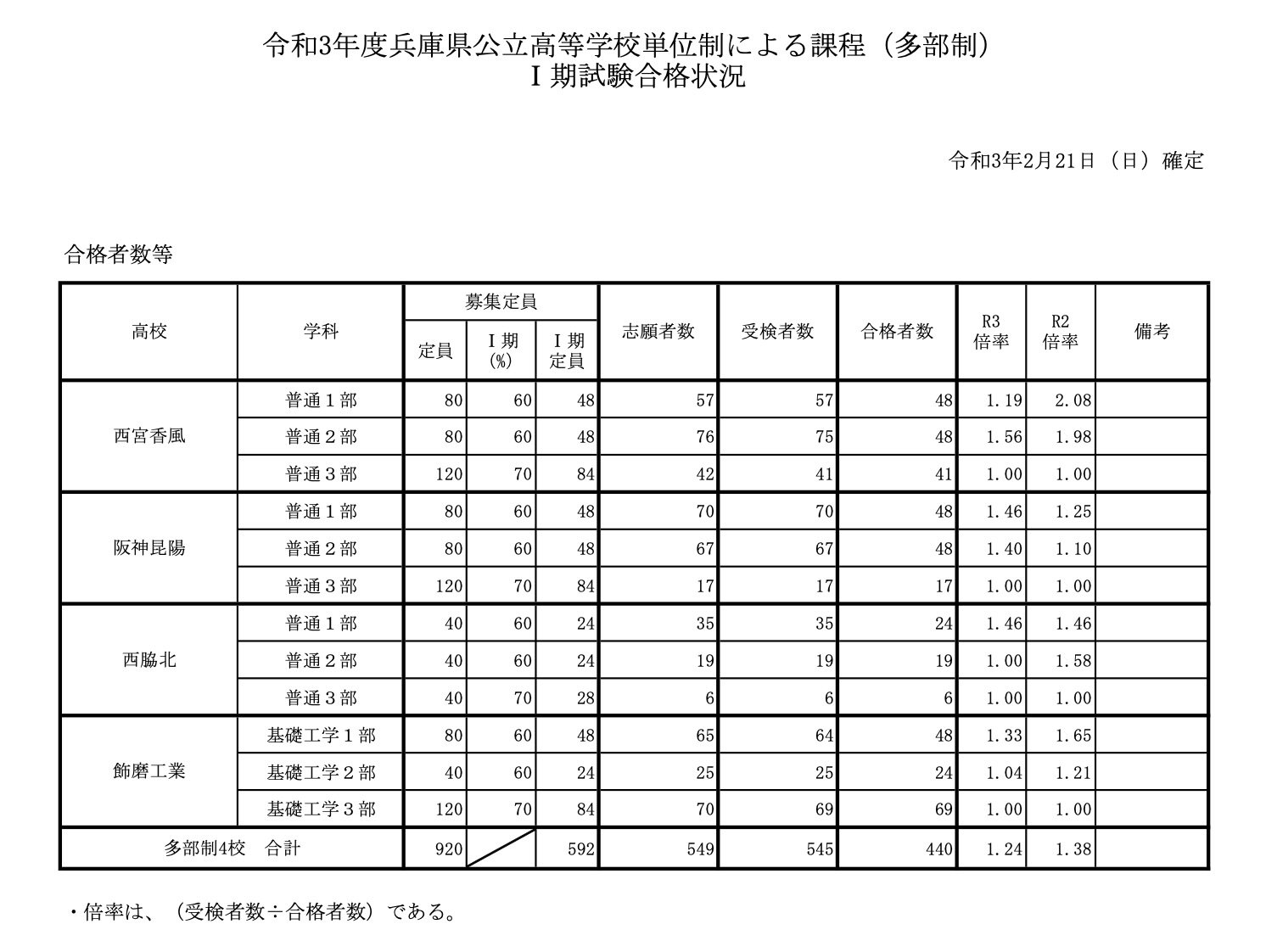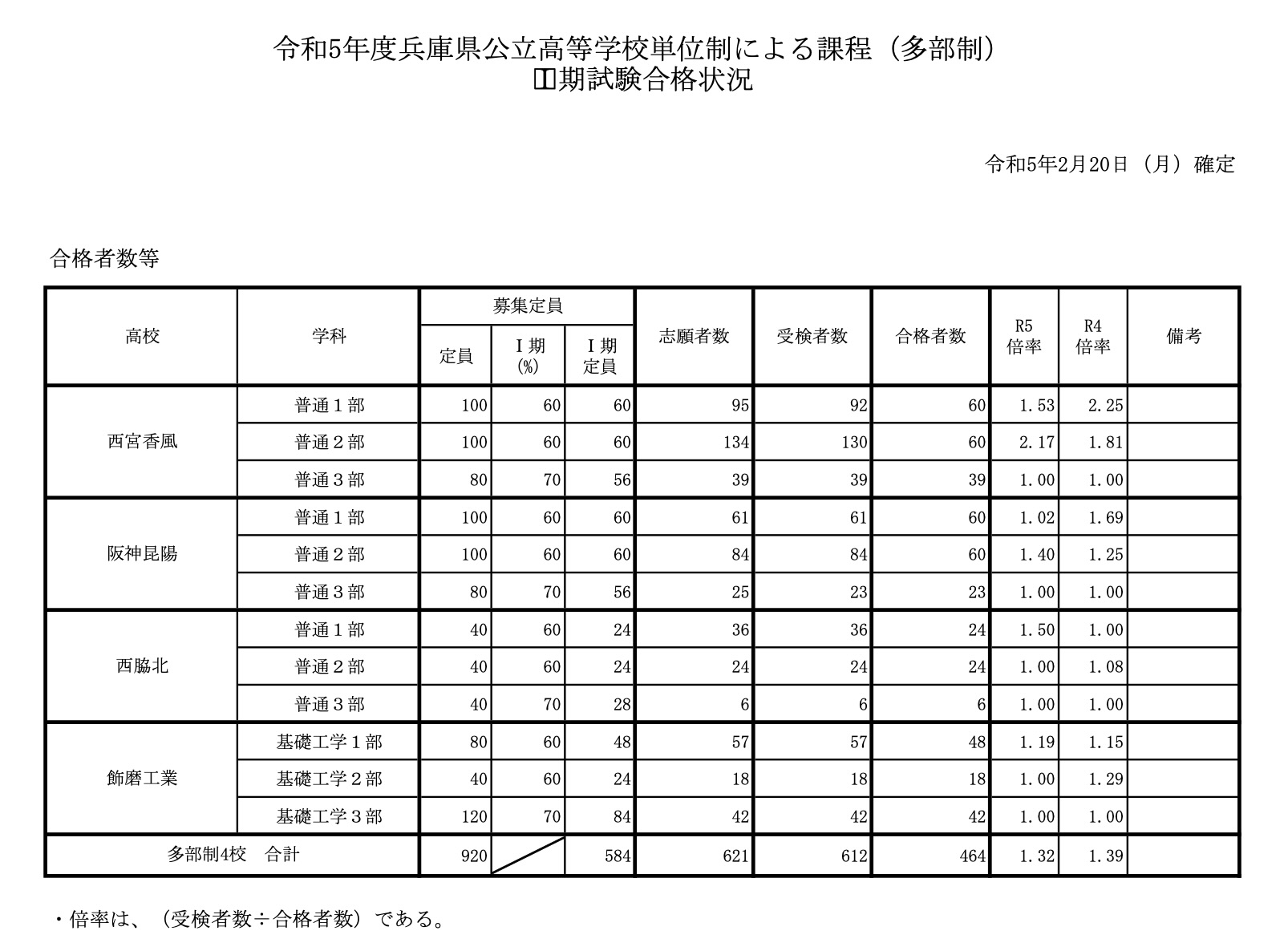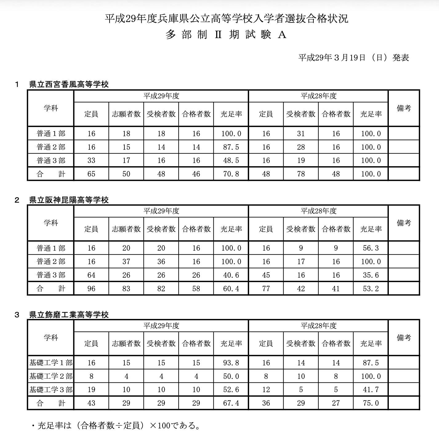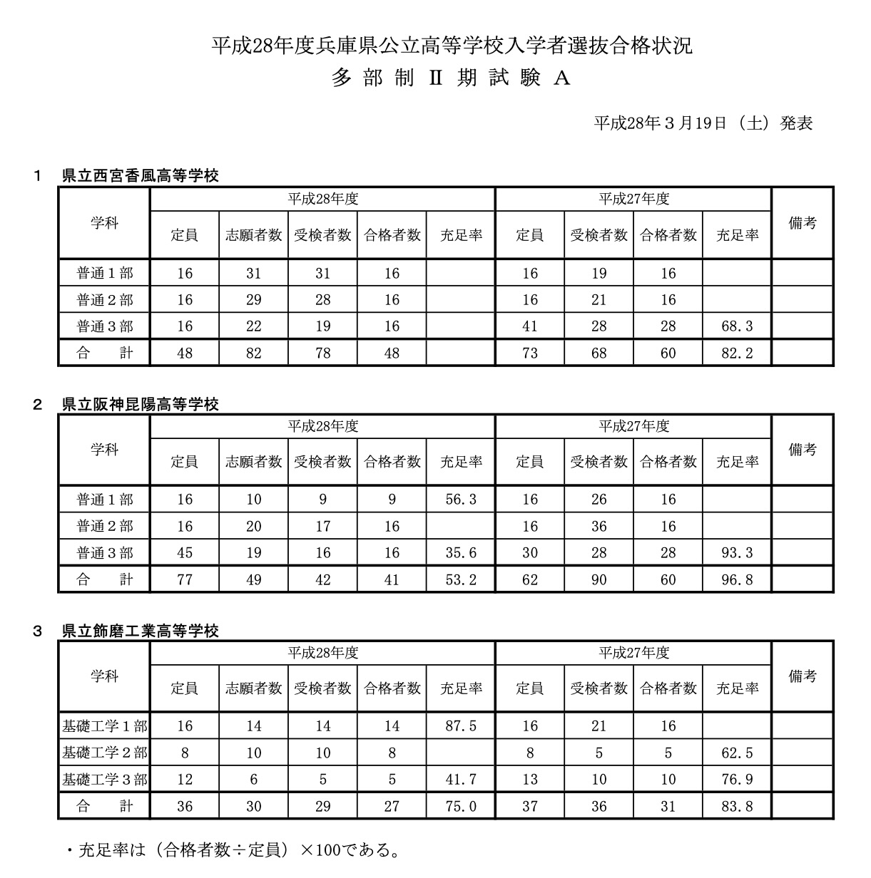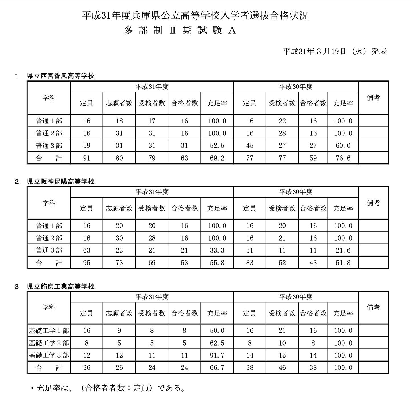 兵庫県公立高等学校入学者選抜(定時制・多部制・通信制)Ⅰ期試験と学力検査とⅡ期試験Aそれぞれの合格状況