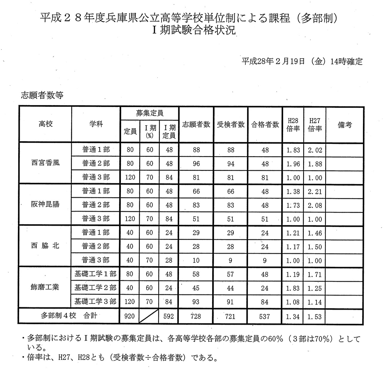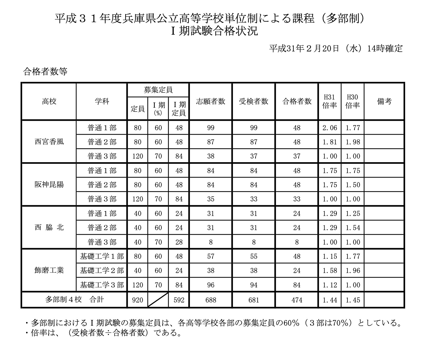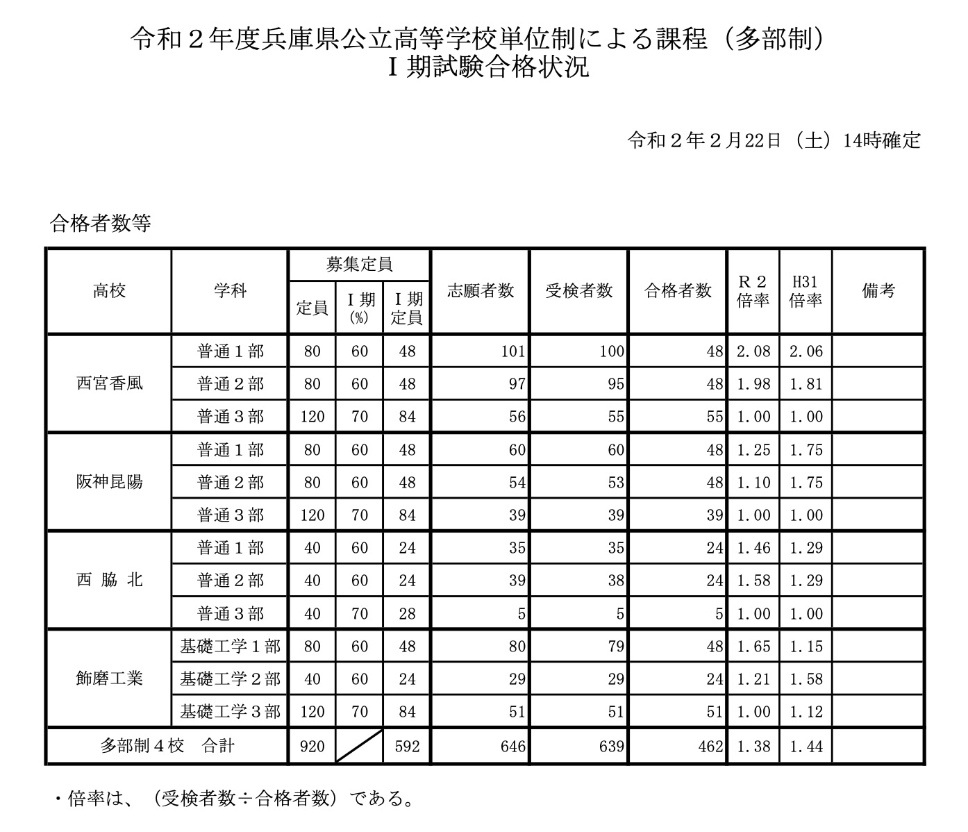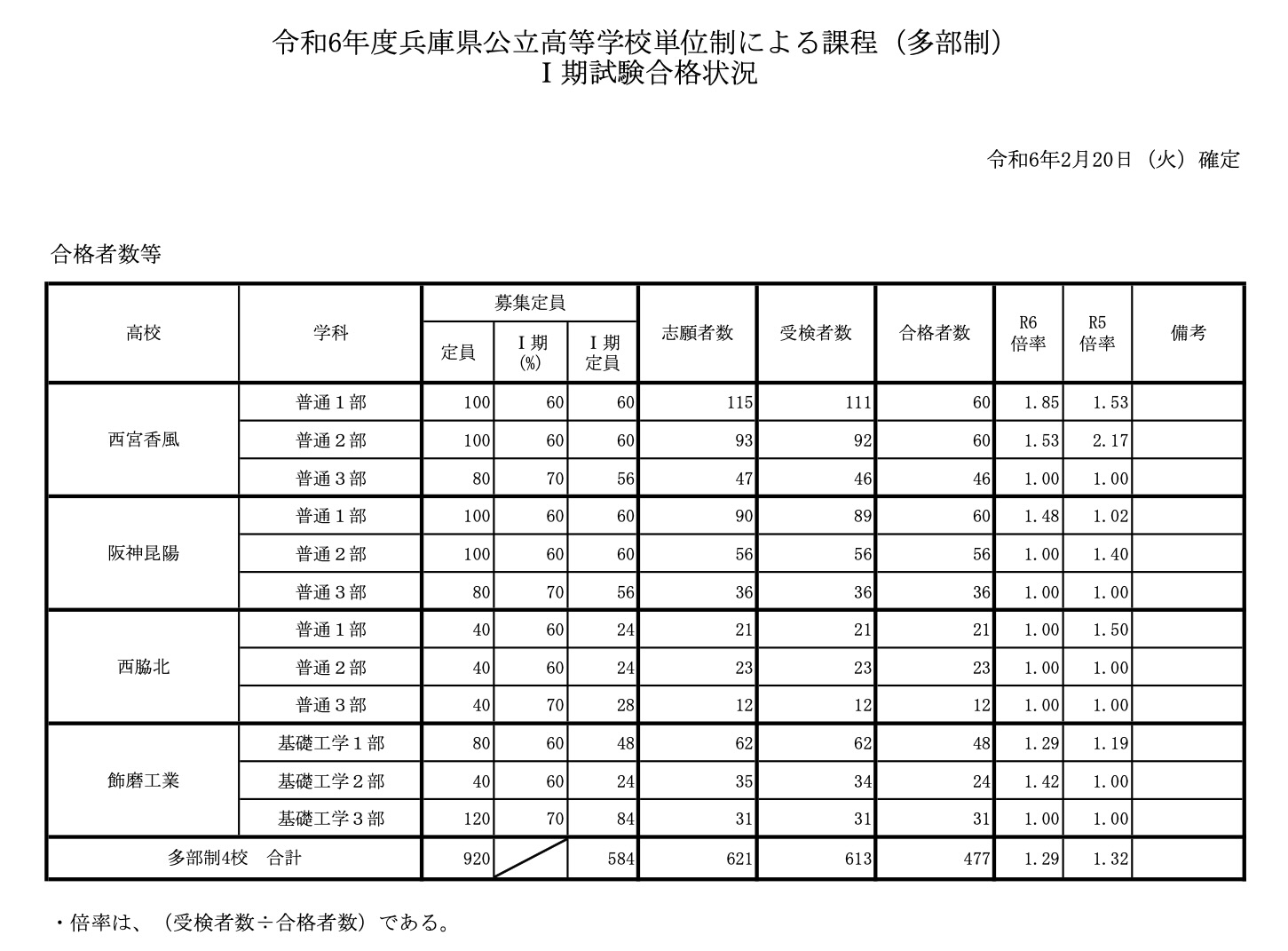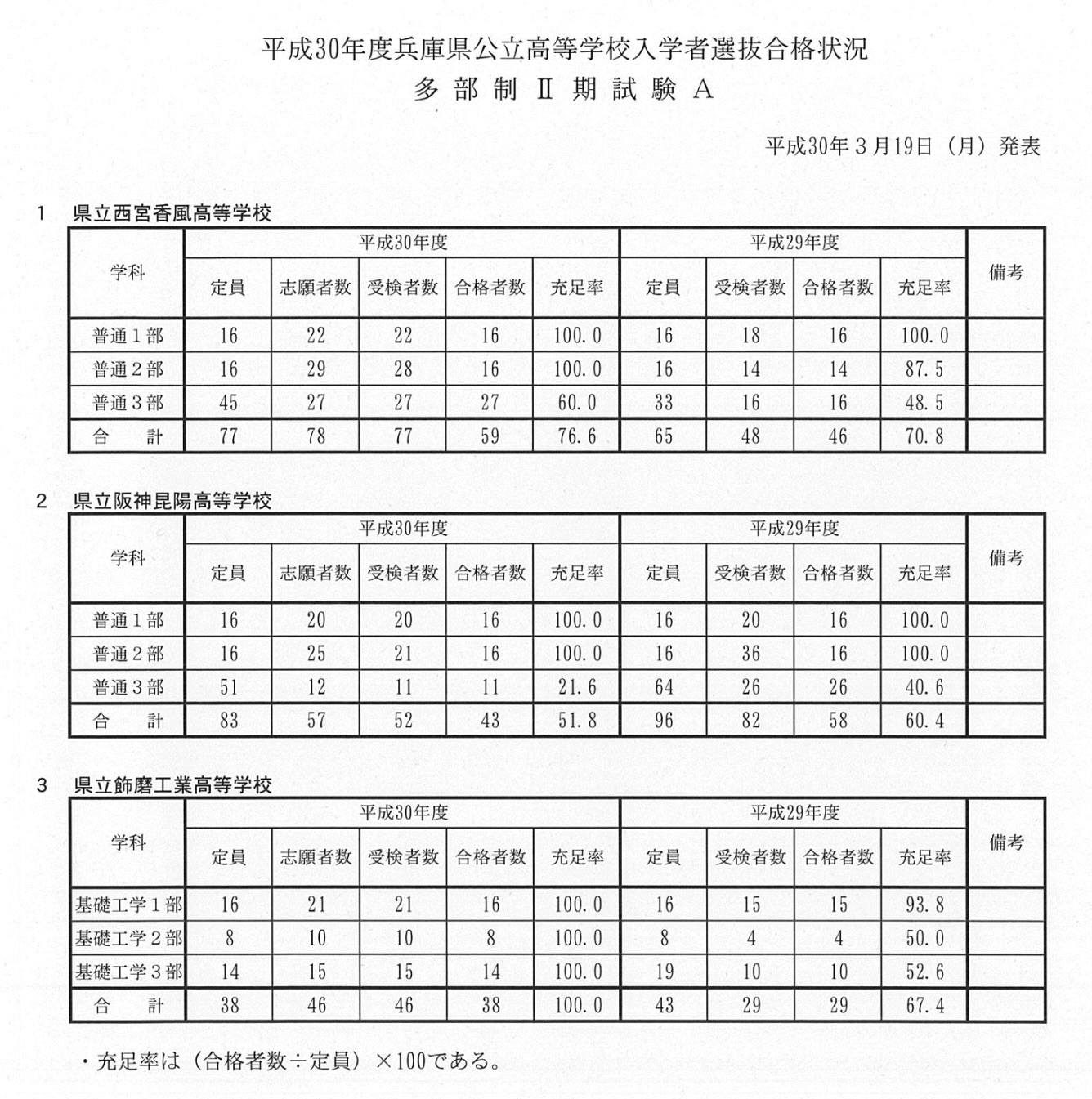 兵庫県公立高等学校入学者選抜(定時制・多部制・通信制)Ⅰ期試験と学力検査とⅡ期試験Aそれぞれの合格状況