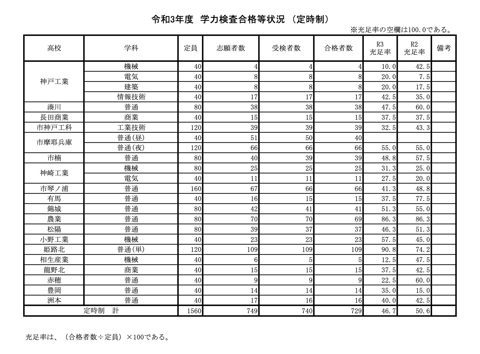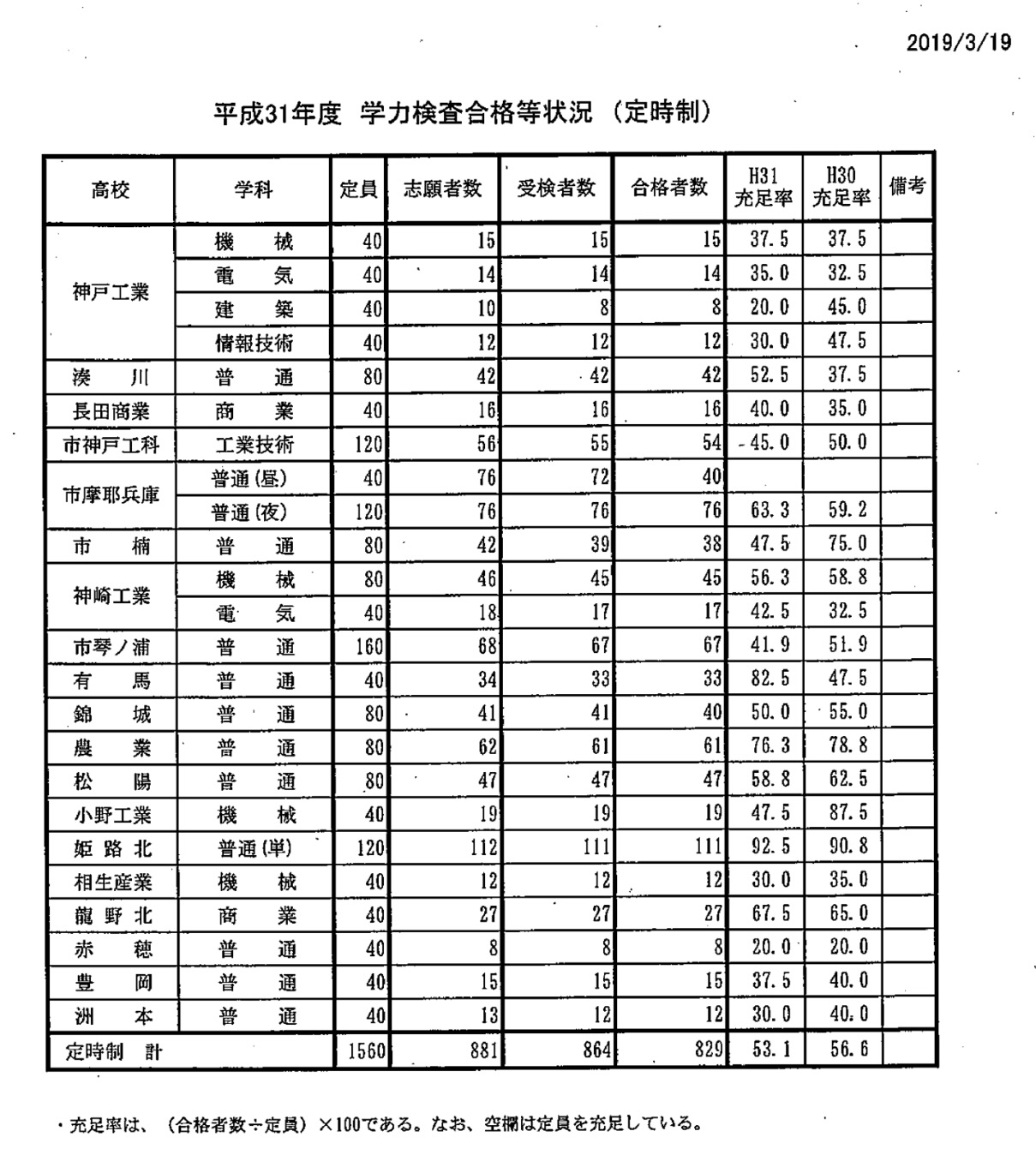 ・兵庫県立姫路北高等学校(定時制機械科)の定員割れ状況を調べた。【3年で卒業できる定時制「3修制」】