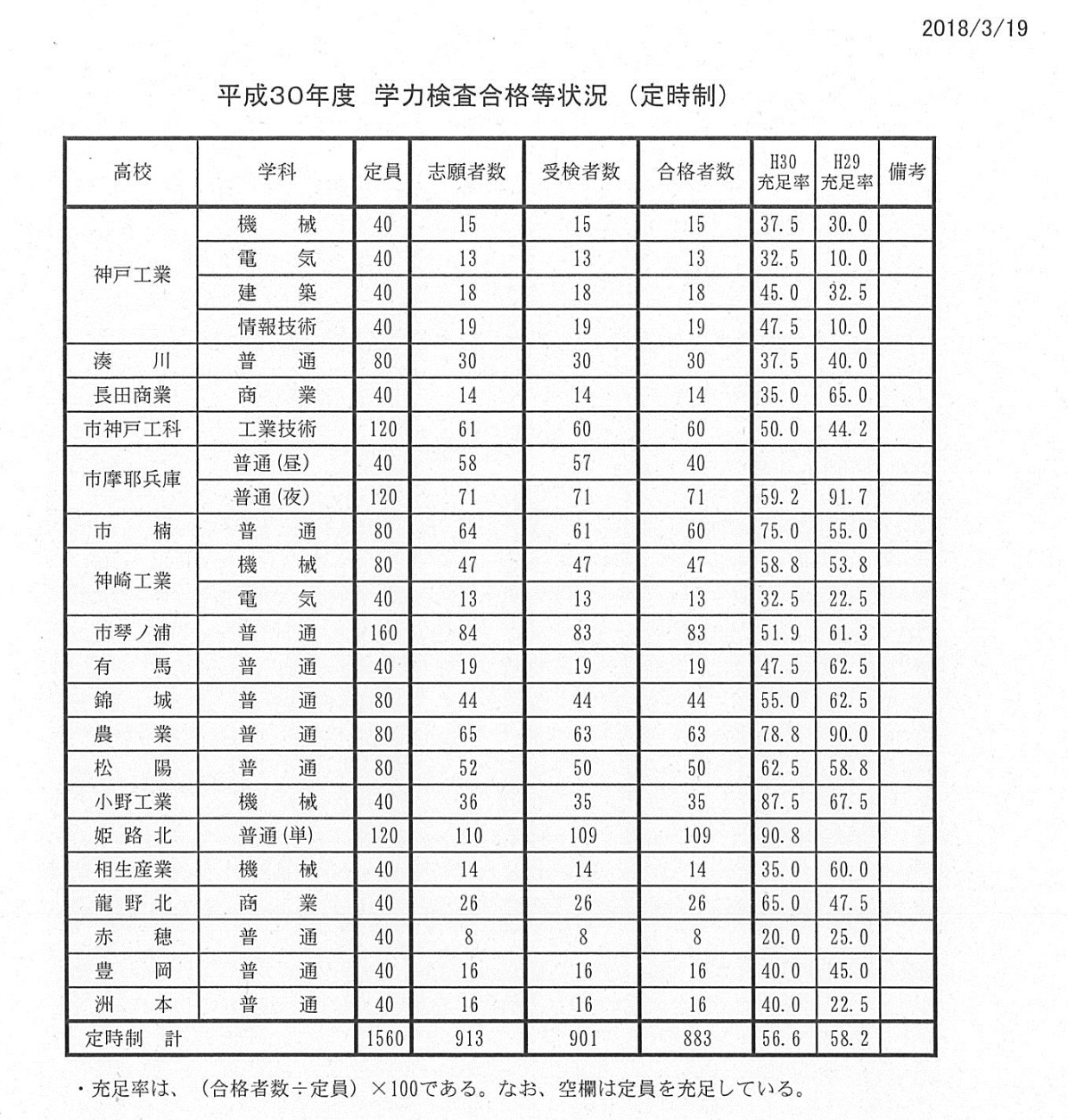 ・神戸市立楠高等学校(定時制普通科)の定員割れ状況を調べた。【3年で卒業できる定時制「3修制」】