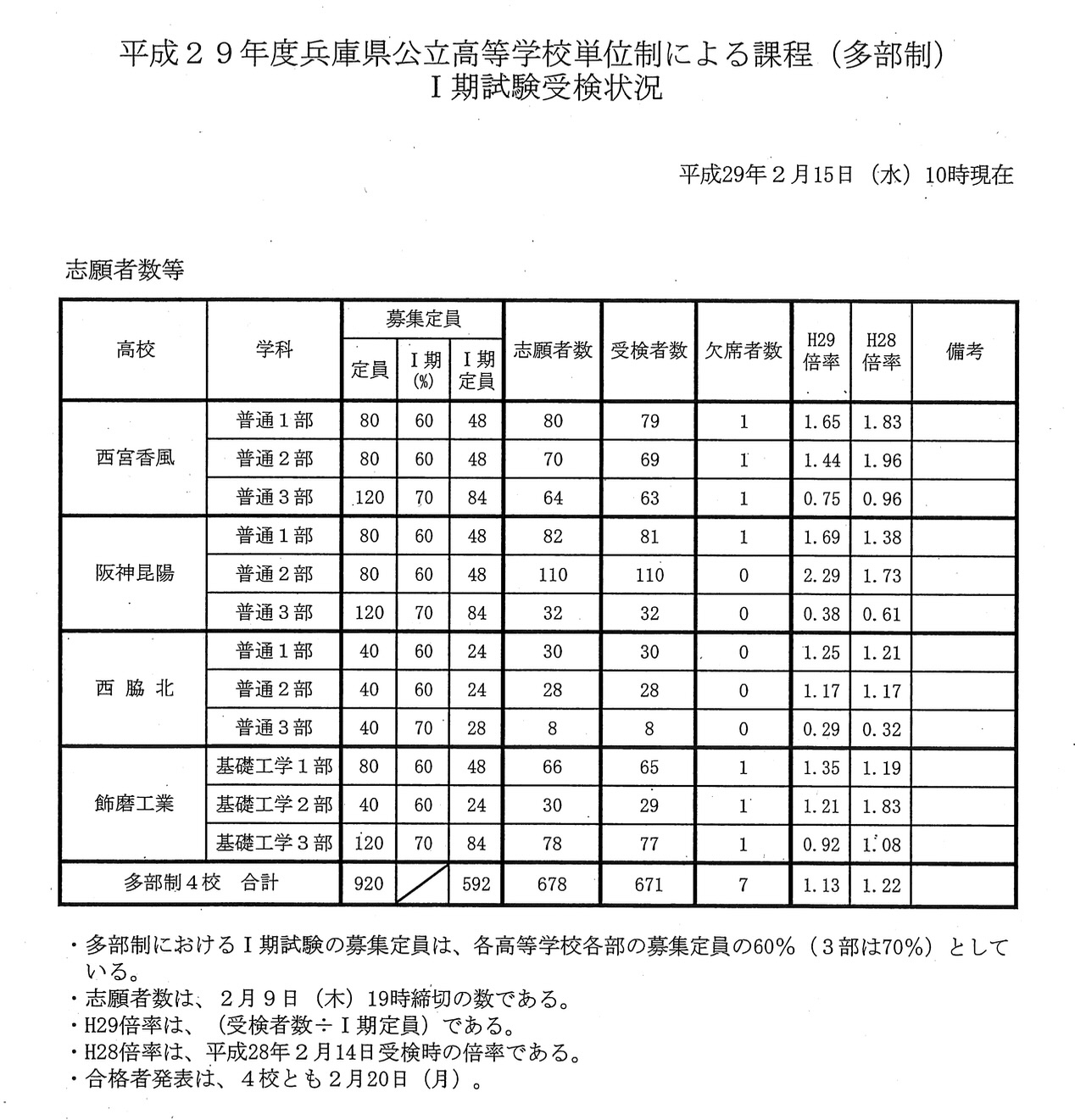 ・兵庫県立阪神昆陽高等学校(多部制普通科)の定員割れ状況を調べた。【3年で卒業できる定時制「3修制」】