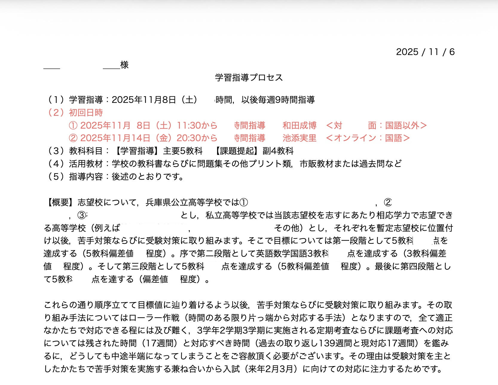 大急ぎでご提案内容を起こす。来週末に期末考査あるけど絶対に諦めない。主要教科も副教科も対応できる。