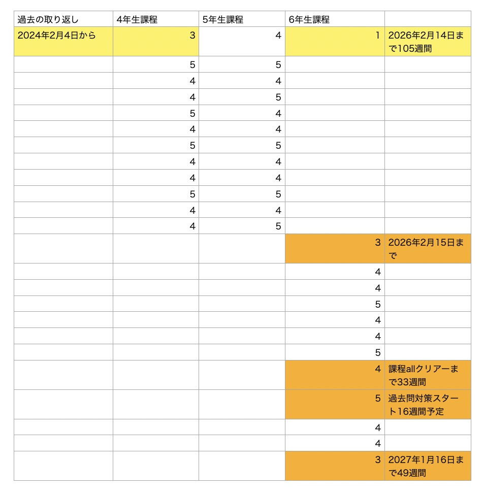 過去105週間分の取り返しを今後49週間で解消しつつ6年生の課程を積み上げる予定やったけど・・・うん?