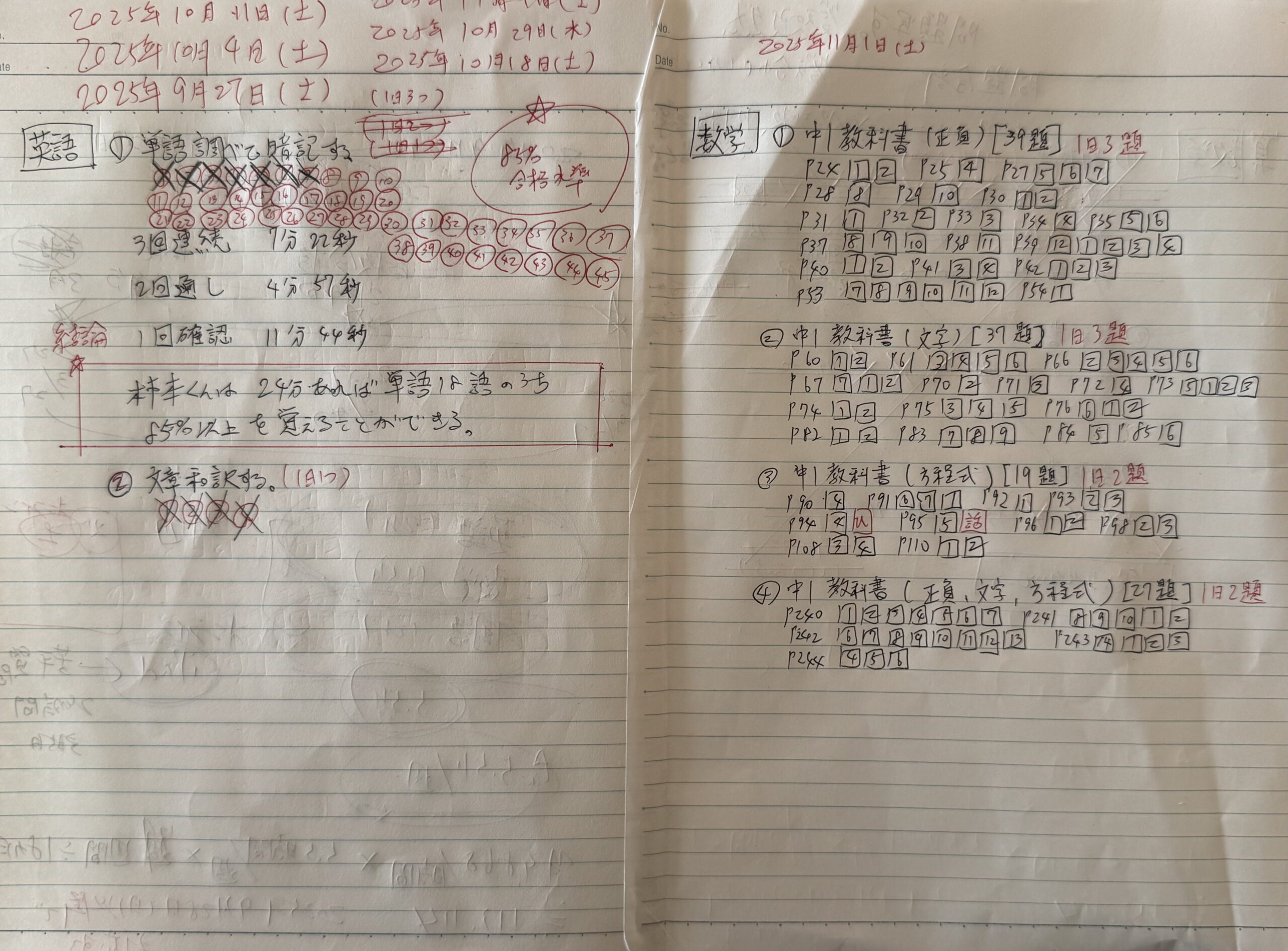 まずは教科書類を全てできるようにします。それができるようになったら次に問題集類を仕上げる。この動きを共に進めることが肝要です。「やってってなぁ〜!」というのは本当に禁物。できへんかったら理由を尋ねて反省させ,自分のこととして受け止めます。甘やかさず誤魔化さず,突き放すこともしない。