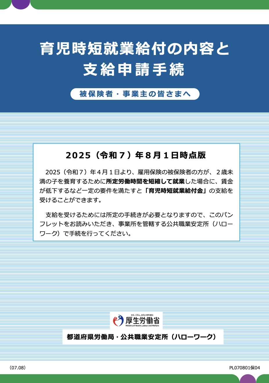 ・2歳に満たない子を養育するために所定労働時間を短縮して就業した場合に、賃金が低下するなど一定の要件を満たしたときに支給される給付金