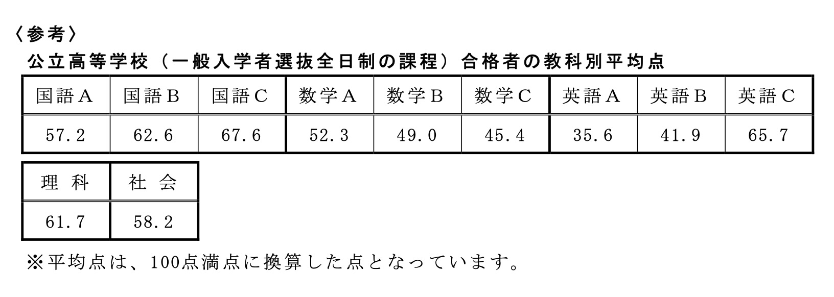令和7年度大阪府公立高等学校入学者選抜学力検査実態( 一 般選抜合格者平均点など)